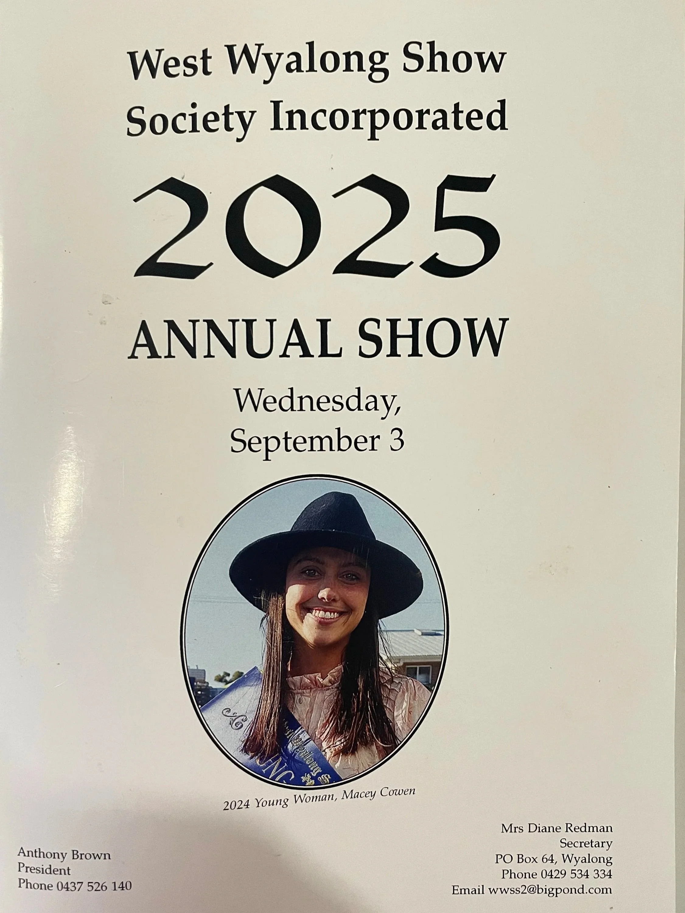 Young Woman announced at official opening. Junior Showgirl & Beau competition to follow. Rego 1.30. Start 2pm